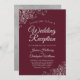 Ces magnifiques invitations de mariage sont conçues pour les invités qui sont invités à la réception uniquement, mais pas à la cérémonie proprement dite. Elles présentent un design simple mais élégant avec des fronces en faux-foir argenté sur fond de couleur bordeaux, marron ou rouge vin avec une écriture élégante et un dos en marbre gris argenté.