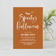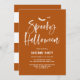Invités Invitations à une célébration hantante et amusante avec cette invitation de fête d'Halloween, avec "Halloween Éffrayant" en texte blanc écrit à la main sur un arrière - plan orange brûlé. Le design moderne en fait un lieu idéal pour les soirées costumées, les fêtes d'anniversaire d'automne ou les soirées de jeux éffrayantes. Les champs personnalisables vous permettent d'entrer facilement les détails de votre fête. Le contraste audacieux du lettrage blanc et des tons orangés chauds assure à votre invitation une meilleure visibilité. Parfait pour l'impression et l'utilisation numérique.