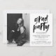 Invités Invitations pour célébrer la grade avec nos invitations de la fête de remise de diplômes photo! Les invitations modernes à la fête de remise de diplômes comportent la photo verticale du diplômé. "Grad Party" s'affiche dans une police de brosse peinte en noir. Personnalisez le devant de l'invitation en ajoutant le nom du diplômé, le nom de l'école, l'année de remise des diplômes et les détails de la fête de remise des diplômes. L'invitation s'inverse pour afficher les détails de votre fête de remise de diplômes avec un arrière - plan de brosse noir et blanc.