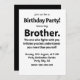 Brother Typographie Anniversaire Fête Frère Invitation design original par Nisha Prabhu. Entièrement Personnalisable. Personnalisez avec vos détails. Préparez-vous à lancer un panier d'anniversaire inoubliable pour votre frère extraordinaire ! Notre Brother Typography Anniversaire Invitation de fête est la meilleure façon de lancer les célébrations. Avec ses couleurs noir et blanc et sa typographie ludique, cette invitation capte la joie et l'excitation de la journée spéciale de votre frère.