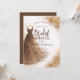 Elegant brown bridal shower design featuring a refined bridesmaid dress illustration with soft floral accents. A warm and earthy style ideal for rustic, boho, or modern bridal shower celebrations with a brown color palette.