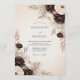 This design features a dreamy blend of deep brown and creamy white blooms with delicate feathery foliage. The composition evokes a sense of romantic, ethereal beauty, perfect for a sophisticated celebration. The artistic arrangement creates a soft, organic feel throughout.