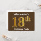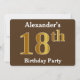 Invitation Brown, Faux Gold 18e fête d'anniversaire; Nom pers