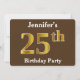 Invitation Brown, Faux Gold 25th Birthday Party; Nom personna