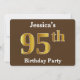 Invitation Brown, Faux Gold 95e fête d'anniversaire; Nom pers