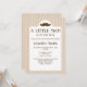 Cette invitation au baby shower de style beige présente une silhouette de moustache marron en haut avec le texte "un petit homme est en route". La couleur arrière - plan est beige avec un motif rayé clair.
