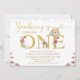 Brown Quelques Fleurs sauvages Bunny 1er Anniversaire Invitation lapin doux thème 1er anniversaire invitation avec un lapin brun, texte faux or et des points ainsi que quelques fleurs sauvages. Ce petit lapin tourne une première invitation d'anniversaire est idéal pour un anniversaire aux alentours de Pâques.