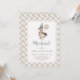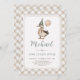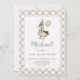 Célébrez la journée spéciale de votre petit avec cette charmante invitation de fête d'anniversaire "Lucky Duck"! Dotée d'une illustration fantaisiste d'un canard de la trempe portant un casquette vert sage et tenant un ballon brun pastel, cette conception est encadrée par une bordure classique tan plaid pour une touche d'élégance rétro.