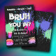 A teen boys "Bruh" themed birthday invitation using cool typography. A custom kids neon graffiti blue, green, pink and purple "burgers, arcade and cake " teenage boys birthday invitation design perfect for any teens birthday party theme. Customize this "Bruh" birthday invitation with your own text and make it your own!
