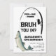 A teen boys "Bruh" fishing themed birthday invitation using cool typography. A custom kids black and white "pizza, cake and fishing " teenage boys birthday invitation design perfect for any teens birthday party theme. Customize this "Bruh" birthday invitation with your own text and make it your own!