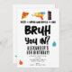 Un ado "Bruh" thème d'invitation d'anniversaire en utilisant la typographie cool. Un enfant personnalisé "pizza, bataille de canon à eau et gâteau" adolescent garçons anniversaire conception d'invitation parfait pour tout ado thème fête d'anniversaire. Customisez cette invitation d'anniversaire "Bruh" avec votre propre texte et faites-en le vôtre !