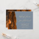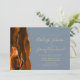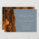 Le bord gauche de cette élégante faire-part de mariage moderne comporte une bordure d'aquarelle couleur orange brûlée et rouille bordée d'une parties scintillant en faux or. Le texte personnalisable combine écriture manuscrite couleur or pâle, cuivre et polices italiques sur un arrière - plan bleu poussiéreux. L'envers est assorti d'une agate orange brûlée et dorée.
