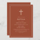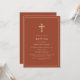 Invitation Brûlé Orange Or Typographie Croix Cadre Baptême