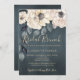 Rustique moderne élégante douche nuptiale invitation chic avec de belles fleurs de crème d'ivoire avec des feuilles gris foncé peints à la main, et un script de typographie manuscrite branché sur un arrière - plan sombre moody. ++++++++++++ Convient pour les fêtes de mariée bohème ou de style rustique à thème fleuri.