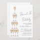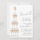 Modern and Elegant Brunch and Bubbly Bridal Shower Invitation. This sophisticated design features a playful twist with a pyramid tower of champagne glasses on the left, symbolizing celebration and joy. All the bridal shower details are arranged on the right side in an elegant mix of script typography and serif fonts, creating a balanced and stylish layout.