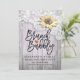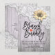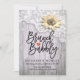 Cartes d'Invitation Enterrement de Vie de Jeune Fille / Mariage - Dentelle Vintage, Tournesols et Guirlandes Lumineuses sur Fond en Bois Rustique.