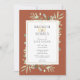 Featuring délicate feuilles de verdure à l'aquarelle et des verres à champagne, cette invitation chic de brunch et de bulle pour l'enterrement de vie de jeune fille peut être personnalisée avec les informations de votre événement de célébration spéciale, avec un fond terracotta au verso. Conçu par Thisisnotme©
