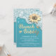Fête des mariées / Mariage Célébration Modèles - Elégant tournesol, cadre en dentelle Vintage et lumières à cordes chic sur Turquoise/ Turquoise/ Tiffany Blue Arrière - plan. Un Design Parfait Pour Votre Grand Jour ! Tous Les Style De Texte, Couleurs, Tailles Peuvent Être Modifiés En Fonction De Vos Besoins.