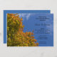 Invitez les convives à célébrer les jeunes mariés le matin après leur cérémonie de mariage en septembre, octobre ou novembre avec l'invitation au Brunch de mariage après la cérémonie avec feuilles d'automne et ciel bleu. Cette invitation personnalisée pour le petit-déjeuner ou le déjeuner après le mariage à thème extérieur présente une photographie de la nature panoramique des feuilles d'automne colorées d'un érable à sucre avec un ciel bleu en arrière-plan.