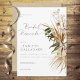 Cette invitation de brunch pour une douche de mariage met en valeur un style bohème moderne, avec un magnifique bouquet de fleurs séchées comme pièce maîtresse. Le bouquet présente une sélection exquise de fleurs séchées, soigneusement disposées pour créer un arrangement captivant. Sur un fond blanc, délicatement délavé avec des accents blancs doux, l'invitation dégage un charme rustique et élégant. Créée par Simply Farmhouse Press.