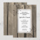 Invitez vos invités à poursuivre la fête le matin après la cérémonie de mariage avec la charmante invitation Brunch de mariage champêtre en bois de grange. Cette invitation personnalisée de style western pour le petit-déjeuner ou le déjeuner après le mariage, sobre et élégante, présente une photographie sépia pittoresque d'une ferme avec des fleurs ornant les coins d'un bois de grange patiné et ébréché. Parfaite inspiration pour votre célébration de mariage informel à la ferme ou dans une grange.