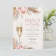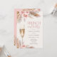 Cette adorable invitation à la douche nuptiale "brunch et mousseuse" est composée d'un arrière - plan en ivoire avec de l'herbe de pampas neutre et terreuse, des fleurs séchées, des roses roses douces et rousses et une coupe de champagne pétillante. Le côté arrière est détaillé avec plus de pampas & floraux et un bel arrière - plan rose vif.