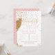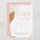 Le dos de l'invitation est rose avec des pois de parties scintillant d'or à associer avec et tout le texte de l'invitation. Il est facilement personnalisable Besoin d'aide avec cela?