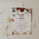 Ce brunch à fleurs rustique or avec invitation à la douche à la mariée est parfait pour un wedding shower simple. Le design est composé de marsala peinte à la main, de rose, de rougeur, de bordeaux et de fleurs dorées avec des feuilles verts disposés en de belles couronnes.