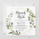 Ce brunch géométrique en or avec l'invitation à la douche à la mariée est parfait pour un wedding shower tropical. Le design présente de beaux feuilles verts peints à la main, ornant un cadre géométrique doré.