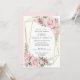 Des roses douces et roses roses rousses ornent un cadre géométrique or fin. Les feuilles verts à la sauge délicats ajoutent à l'aquarelle à l'arrangement floral. Un rose pastel balaie le dos. Cette invitation à brunch mariage à fleurs roses fait partie de la collection Summer Romance. Il contient de nombreux modèles mariage do-it-yourself qui vous permettent de créer facilement un beau ensemble d'invitation de brunch mariage et un décor de fête.