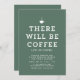 Il y aura du café ! Un brunch post-mariage avec café et autres cafés est réservé aux mariages Invitations. Cette invitation à brunch amusante présente un blanc gras sur un arrière - plan vert sauge foncé et une illustration de tasse de café. Les amis et la famille peuvent se réunir après le mariage pour un brunch d'adieu qui sera certainement un bon moment. Cette invitation fonctionne aussi bien pour d'autres occasions et peut être trouvé dans plus de couleurs dans la collection de Lea Delaveris Design. Aussi disponible en téléchargement d'invitation de brunch numérique.
