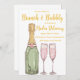 Levez votre douche nuptiale avec ce design chic et tendance. Doté d'une délicate bouteille de champagne rose et or entourée de mignons éléments floraux modernes, ce design est parfait pour une fête autour du brunch. Les détails botaniques apportent une touche de beauté naturelle, tandis que les tons bleus créent une atmosphère douce et féminine. Cette invitation impressionne vos invités et donne le ton pour une douche nuptiale mémorable.