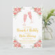Levez votre douche nuptiale avec ce design chic et tendance. Doté d'une délicate bouteille de champagne rose et or entourée de mignons éléments floraux modernes, ce design est parfait pour une fête autour du brunch. Les détails botaniques apportent une touche de beauté naturelle, tandis que les tons bleus créent une atmosphère douce et féminine. Cette invitation impressionne vos invités et donne le ton pour une douche nuptiale mémorable.