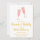 Levez votre douche nuptiale avec ce design chic et tendance. Doté d'une délicate bouteille de champagne rose et or entourée de mignons éléments floraux modernes, ce design est parfait pour une fête autour du brunch. Les détails botaniques apportent une touche de beauté naturelle, tandis que les tons bleus créent une atmosphère douce et féminine. Cette invitation impressionne vos invités et donne le ton pour une douche nuptiale mémorable.