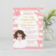 Jolie brunette fille rose sainte première communion design avec arrière - plan rayé rose et confetti en feuille d'or. Graphiques de Mujka et KlouiseDigiArt sur Etsy.