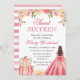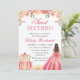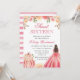 Invitation Brunette en Robe Rose Floral Citrouille Sweet 16