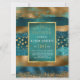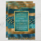 Brush turquoise et or brush strokes et confetti mariage douche nuptiale Invitation. Cet élégant design présente des touches de peinture de pinceau en turquoise, or et confetti. Votre texte est dans un cadre bleu turquoise avec une bordure en or. Il est idéal pour un mariage d'hiver.
