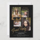 Cette invitation à la fête de remise de diplômes comporte un simple collage de 4 photos sur un arrière - plan noir avec un accent or texte script. Personnalisez avec vos photos senior préférées et vos détails d'invitation de grand parti.