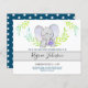 Invitations de douches pour bébés à thème neutre par genre avec une illustration d'éléphant doux dessinée à la main par Valarie Wade. Sur l'éléphant, les tons clairs sont rose et bleu. Ce petit éléphant mignon berce un coeur à l'ombre violette. Des feuilles multicolores dans un dégradé jaune à bleu sont sur l'arrière - plan. Facile à ajuster modèle vous permet de customiser les invitations pour en faire votre propre.