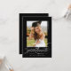 Budget Black Elegant Script Photo Graduation Party Invitation présente un script magnifique et élégant superposant votre photo, ainsi que les détails de votre fête et la photo au dos.