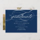 Invitation Budget Blue Elegant Script Photo Graduation Party