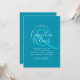 Élégant mariage monochrome bleu azur oriental moderne, bondi, conçu par LeahG®, fondateur du LowBudgetWeddingNetwork®. Ce design présente une gamme de produits - consultez la collection ci-jointe pour les visualiser tous. Notez que les invitations de mariage, enregistrer les dates, les rsvps et les cartes de remerciements (lorsque le produit le permet) comprennent des champs de modèle texte sur les deux côtés pour vous permettre de mettre tous votre code de numérisation QR requis, le site Web du mariage, le registre des cadeaux, les détails de l'hébergement, etc. Cela vous permet d'économiser de l'argent en évitant la nécessité d'acheter des boîtiers supplémentaires et des cartes de détail. Idéal pour les couples mariages à budget. 📌 Pin ce design à votre Pinterest mariage humod board afin que vous puissiez commencer votre planification de thème mariage à un bon départ! Les modèles monochromes sont parfaits pour toute saison, automne, été, printemps et hiver. Vous pouvez les améliorer en ajoutant vos propres graphiques comme image superposée. Zazzle dispose d'un service LIVE DESIGNER GRATUIT qui peut vous aider avec cela. Pour des idées voir mes collections mariages ici : www.giftsandinvitations.com. ⚠️ Noter que les postes budgétaires à bas prix peuvent être en papier léger. Pour un guide sur les types de papier et de cartes/prix, visitez ma page ici https://www.lowbudgetwedding.network/#faqs. Vous pouvez TRANSFÉRER vers cardstock via les outils de page. ⭐ Suivez mes magasins, transmettez cette information à vos groupes de planification mariages et enregistrez cette page pour une utilisation future ! ©️ LeahG®