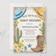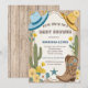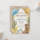 Yeehaw ! En selle, partenaire, parce qu'un petit cowboy est en route ! Préparez-vous à ôter votre chapeau et à soulever la poussière alors que nous célébrons la future maman (ou les futurs parents) dans un style de cowboy rustique et western avec ce charmant design pour une baby shower pour garçon. Imaginez un fond de sable à l'aquarelle orné d'une variété de cactus, d'un fer à cheval fiable, de bottes classiques et d'un chapeau de cowboy, le tout lié par un panneau de bois patiné proclamant fièrement la 'Baby Shower' à venir.
