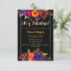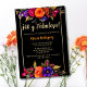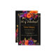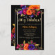 Budget Espagnol Élégant Bright Colorful et Vibrant Florals Black 40th Birthday Party Invitation - Cette version budget est une carte plus petite (3,5" x 5"). Célébrez son 40e anniversaire avec classe et élégance avec cette belle et vibrante invitation de fête de 40e anniversaire. Avec des bouquets de fleurs orange, jaune, magenta et violet et un cadre doré sur un arrière - plan noir élégant. L'expression "40 y fabulosa" est écrite dans la typographie de calligraphie de script. Parfait pour un anniversaire sur le thème du jardin, fête d'anniversaire de nuit ou fête du thé. Modifiez ce modèle d'invitation de 40e anniversaire pour répondre à vos besoins. Tout le texte est modifiable. Disponible en téléchargement numérique instantané, parfait pour l'envoi par e-mail, texte ou médias sociaux.