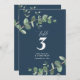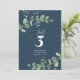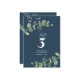 Belle délicate élégante budget de l'eucalyptus feuillage mariage de conception de numéro de table. Moderne élégant sur tendance sauge vert, noir, bleu marine et blanc élégant collection contemporaine rustique. Idéal pour les mariages de printemps, d'été, d'automne ou d'hiver.