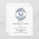 Invitation budget pour 50e anniversaire floral bleu. Facile à personnaliser avec vos informations.