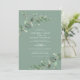 Eucalyptus Feuillage verdure aquarelle moderne minimaliste élégant contemporain jardin Faire-part de mariage de fête. Design botanique contemporain simple. Sage vert, bleu marine, noir et blanc élégant colorway moderne convient printemps, été automne, automne et blanc cérémonies mariages. Avec de l'espace à l'arrière pour un code QR pour lier à l'information du site Web.
