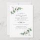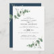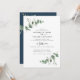 Eucalyptus Feuillage verdure aquarelle moderne minimaliste élégant contemporain jardin Faire-part de mariage de fête. Design botanique contemporain simple. Sage vert, bleu marine, noir et blanc élégant colorway moderne convient printemps, été automne, automne et blanc cérémonies mariages. Avec de l'espace à l'arrière pour un code QR pour lier à l'information du site Web.
