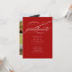 Budget Red Modern Elegant Script Photo Graduation Party Invitation présente un script magnifique et élégant, ainsi que les détails de votre fête, et votre photo complète au dos.