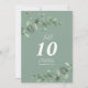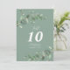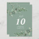 Belle délicate élégante budget de l'eucalyptus feuillage mariage de conception de numéro de table. Moderne élégant sur tendance sauge vert, noir, bleu marine et blanc élégant collection contemporaine rustique. Idéal pour les mariages de printemps, d'été, d'automne ou d'hiver.